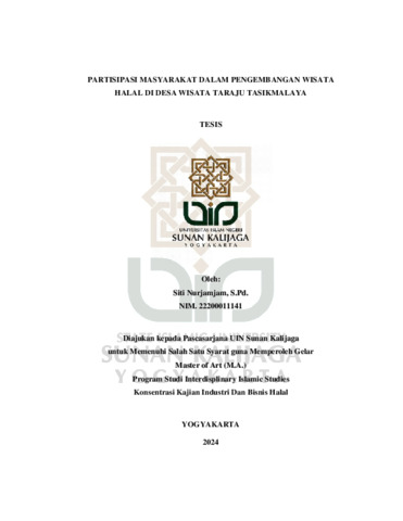 Siti Nurjamjam, S.Pd., NIM.: 22200011141 (2024) PARTISIPASI MASYARAKAT DALAM PENGEMBANGAN WISATA HALAL DI DESA WISATA TARAJU TASIKMALAYA. Masters thesis, UIN SUNAN KALIJAGA YOGYAKARTA.