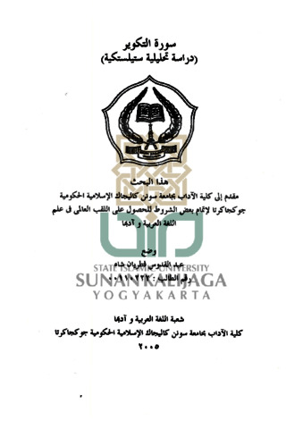 Abdul Qudus Fitriansyah, NIM.: 00110222 (2005) Surah Al Takwir (Dirasah Tahliliyyah Stilistikiyyah). Skripsi thesis, UIN SUNAN KALIJAGA YOGYAKARTA.
