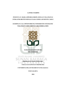 Fani Anggraeni Saputri, NIM.: 20106010026 (2024) PENENTUAN HARGA OPSI BELI EROPA DENGAN VOLATILITAS STOKASTIK HESTON MENGGUNAKAN SIMULASI MONTE CARLO. Skripsi thesis, UIN SUNAN KALIJAGA YOGYAKARTA.