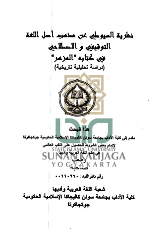 Text (NAZARIYYAH AL SUYUTI 'AN MADHHAB ASL AL LUGHAH AL TAWQIFIY WA AL ISTILAHI FI KITABIH AL MUZHIR : Dirasah Tahliliyyah Tarikhiyyah)