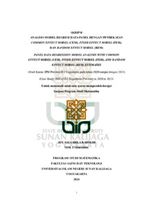 Ayu Salsabila Rahmah, NIM.: 17106010006 (2024) ANALISIS MODEL REGRESI DATA PANEL DENGAN PENDEKATAN COMMON EFFECT MODEL (CEM), FIXED EFFECT MODEL (FEM), DAN RANDOM EFFECT MODEL (REM). Skripsi thesis, UIN SUNAN KALIJAGA YOGYAKARTA.