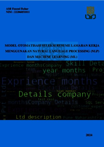 Afdi Fauzul Bahar, NIM.: 22206051011 (2024) MODEL OTOMATISASI SELEKSI RESUME LAMARAN KERJA MENGGUNAKAN NATURAL LANGUAGE PROCESSING (NLP) DAN MACHINE LEARNING (ML). Masters thesis, UIN SUNAN KALIJAGA YOGYAKARTA.
