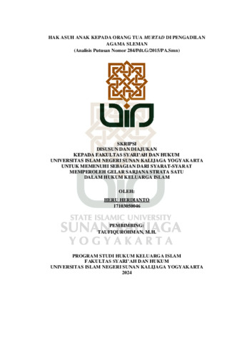 Text (HAK ASUH ANAK KEPADA ORANG TUA MURTAD DI PENGADILAN AGAMA SLEMAN (ANALISIS PUTUSAN NOMOR 284/PDT.G/2015/PA.SMN))