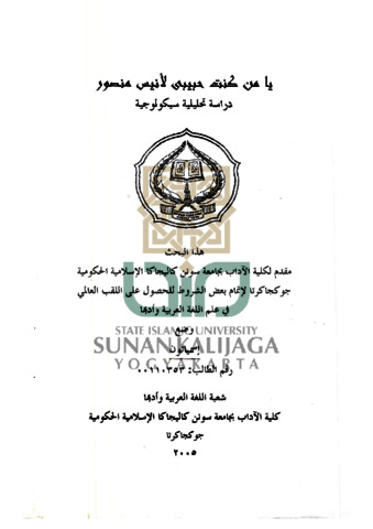 Ismiyatun, NIM.: 00110353 (2005) Ya Man Kunta Habibiy Li Anis Mansur : Dirasat Tahliliyyah Sikulujiyyah. Skripsi thesis, UIN SUNAN KALIJAGA YOGYAKARTA.
