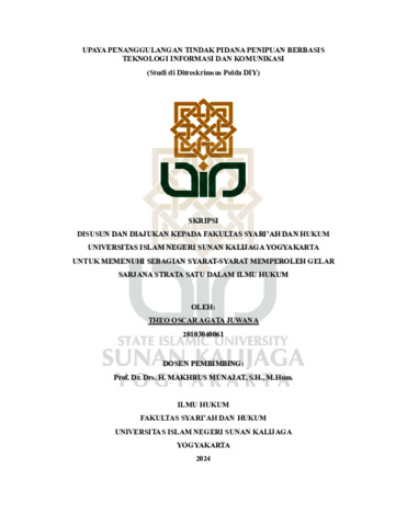 Theo Oscar Agata Juwana, NIM.: 20103040061 (2024) UPAYA PENANGGULANGAN TINDAK PIDANA PENIPUAN BERBASIS TEKNOLOGI INFORMASI DAN KOMUNIKASI (STUDI DI DITRESKRIMSUS POLDA DIY). Skripsi thesis, UIN SUNAN KALIJAGA YOGYAKARTA.