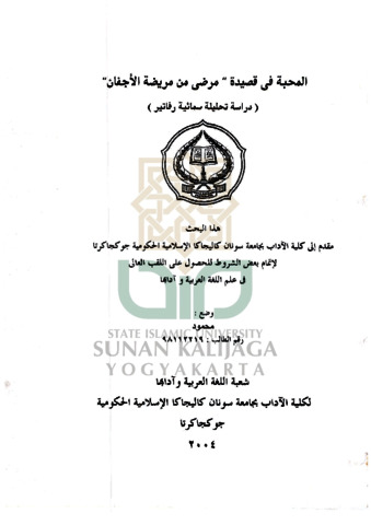 Mahmud, NIM.: 98112219 (2004) AL MAHABBAH FI QASIDAH MARADHI MIN MARIDHA 'AJFANI (Dirasah Tahliliyah Sima'iyyah). Skripsi thesis, UIN SUNAN KALIJAGA YOGYAKARTA.