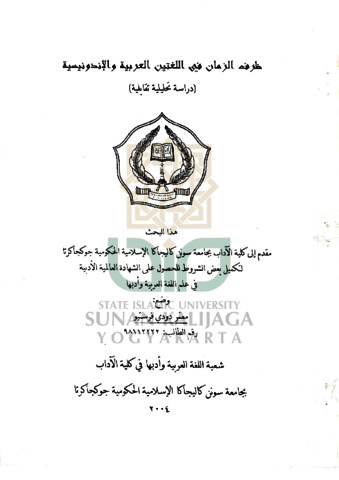 Muamar Dodi Prastiyo, NIM.: 98112222 (2004) ZARFU AL ZAMAN FI AL LUGHATIN AL ARABIYYAH WA AL INDONESIAH (Dirasat Tahliliyyah Taqabiliyyah). Skripsi thesis, UIN SUNAN KALIJAGA YOGYAKARTA.