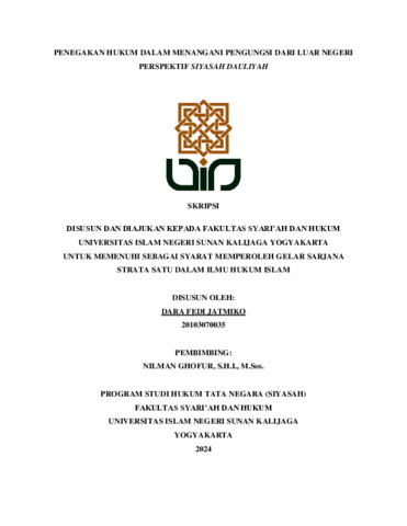 Dara Fedi Jatmiko, NIM.: 20103070035 (2024) PENEGAKAN HUKUM DALAM MENANGANI PENGUNGSI DARI LUAR NEGERI PERSPEKTIF SIYASAH DAULIYAH. Skripsi thesis, UIN SUNAN KALIJAGA YOGYAKARTA.