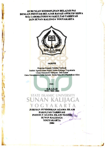 Text (HUBUNGAN KEDISIPLINAN BELAJAR PAI DENGAN PRESTASI BELAJAR RANAH AFEKTIF SISWA MTs LABORATORIUM FAKULTAS TARBIYAH IAIN SUNAN KALIJAGA YOGYAKARTA)