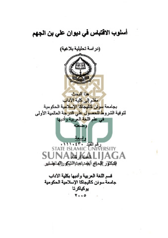 Wasi'ah, NIM.: 01110430 (2005) Uslub Al Iqtibas Fi Diwan Ali Ibn Al Jahm : Dirasat Tahliliyyah Balaghiyyah. Skripsi thesis, UIN SUNAN KALIJAGA YOGYAKARTA.