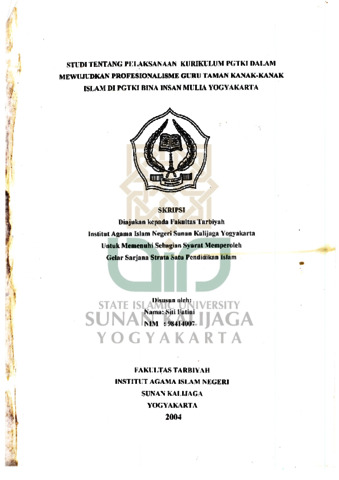 Text (STUDI TENTANG PELAKSANAAN KURIKULUM PGTKI DALAM MEWUJUDKAN PROFESIONALISME GURU TAMAN KANAK-KANAK ISLAM DI PGTKI BINA INSAN MULIA YOGYAKARTA)
