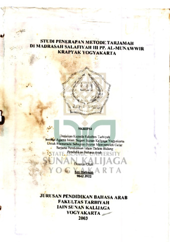 Siti Halimah, NIM.: 98423922 (2003) STUDI PENERAPAN METODE TARJAMAH DI MADRASAH SALAFIYAH III PP. AL-MUNAWWIR. Skripsi thesis, UIN SUNAN KALIJAGA YOGYAKARTA.