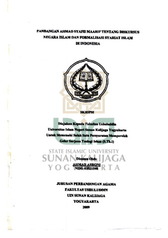 Text (PANDANGAN AHMAD SYAFII MAARIF TENTANG DISKURSUS NEGARA ISLAM DAN FORMALISASI SYARIAT ISLAM DI INDONESIA)