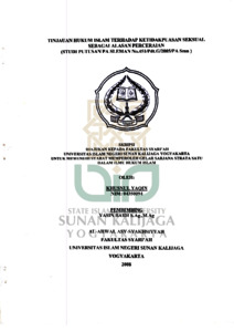 Dalam membangun sebuah keluarga, kehidupan suami istri hanya dapat tegak berdiri atas dasar ketenteraman, ketenangan, suami istri saling sayang menyanyangi, bergaul dengan sebaik-baiknya dan masing-masing pihak menunaikan hak dan kewajibannya dengan ikhlas jujur dan pengabdian. Apabila timbul kekurangsenangan dari salah satu pihak, istri kurang menyayangi suaminya, atau kewajiban salah satu pihak tidak terpenuhi, muncul gejala keretakan hubungan antara suami istri, dan apabila kebencian telah bertumpak tumpuk dan telah memuncak sehingga sulit terobati dan dasar-dasar rumah tangga telah hancur maka jalan terkhir adalah perceraian. Dalam hukum Islam bahwa perkawinan itu untuk selamanya bahkan dalam hadis mengatakan sesuatu yang dihalalkan tapi dibenci oleh Allah adalah perceraian, Undang-undang perkawinan di Indonesia Pasal 39 ayat 1 dan 2 menyatakan: 1. Perceraian hannya dapat dilakukan di depan Sidang Pengadilan setelah Pengadilan yang bersangkutan berusaha dan tidak berhasil mendamaikan kedua belah pihak.2. Untuk melakukan perceraian harus ada cukup alasan, bahwa antara suami istri itu tidak akan dapat hidup rukun sebagai suami istri. Sedangkan alasan yang sah telah diatur dalam PP No.9 Tahun 1975 Pasal 19 jo Pasal 116 Kompilasi Hukum Islam. Sedangkan fenomena di lapangan ada sebuah putusan perkara ketidakpuasan seksual sebagai alasan perceraian No. 451/PdLG/2005/PA.Smn di Pengadilan Agama Sleman yang dilihat dalam undang-undang tidak termasuk daları alasan yang sah untuk melakukan perceraian, maka bagaimanakah pertimbangan hakim dalam mengambil putusan dan bagaimanakah tinjauan hukum Islam terhadap ketidakpuasan seksual sebagai alasan perceraian. Penclitian ini adalah penelitian lapangan, penggunaan metode yang penyusun gunakan adalah metode-inshukrif. Maka pendekatan yang penyusun gunakan adalah pendekatan normatif-yuridis, pendekatan derigan melihat persoalan yang dikaji apakah sesuai dengan norma dan kebutuhan masyarakat yang didasarkan hukum Islam dan perundang-undangan di Indonesia. Adapun hasil dari penelitin ini adalah bahwa hakim dalam menyelesaikan perkara perceraian yang alasannya tidak atau kurang jelas dalam peraturan hukum di Indonesia, hakim dalam pertimbangan putusan perkara ketidakpuasan seksual sebagai alasan perceraian mengembalikan perkara tersebut ke akibat dari ketidakpuasan seksual dan dalam hukuman portimbangan nakim dalam menjatuhkan putusan tersebut telah sesani dalam aturan hukum Islam