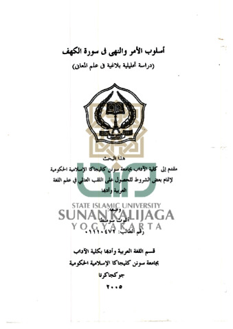 Agus Sumanto, NIM.: 01110472 (2005) Uslub Al Amar Wa Al Nahi Fi Surah Al Kahfi : Dirasah Tahliliyyah Balaghiyyah Fi 'ilm Al Ma'aniy. Skripsi thesis, UIN SUNAN KALIJAGA YOGYAKARTA.