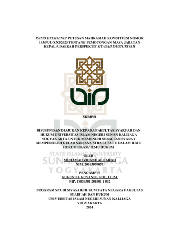 Text (RATIO DECIDENDI PUTUSAN MAHKAMAH KONSTITUSI NOMOR 143/PUU-XXI/2023 TENTANG PEMOTONGAN MASA JABATAN KEPALA DAERAH PERSPEKTIF SIYASAH DUSTURIYAH)