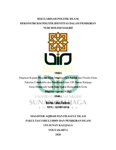 Text (SEKULARISASI POLITIK ISLAM: DEKONSTRUKSI POLITIK IDENTITAS DALAM PEMIKIRAN NURCHOLISH MADJID)