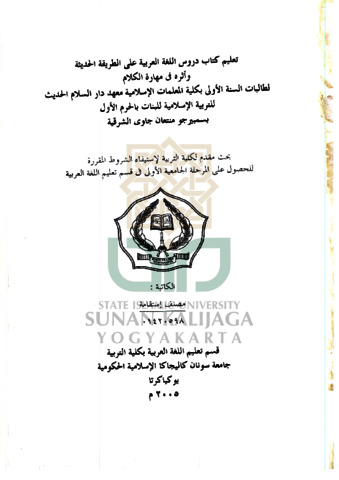 Musnif lstiqomah, NIM.: 01420598 (2005) Ta'lim Kitab Durus Al Lughah Al Arabiyah 'ala Al Tariqht Al Hadithah Wa Atharuhu Fi Maharah Al Kalam (Li Talibat Al Sannah Al Ula Bi Kuliyah Al Ma'lumat Al Islamiyah Ma'had Dar Al Islam Al Hadith Li Al Tarbiyah Al Islamiyah Li Al Banat Bi Al Haram Al Ula Bi Sambirejo Mantingan Jawi Al Sharqiyyah. Skripsi thesis, UIN SUNAN KALIJAGA YOGYAKARTA.
