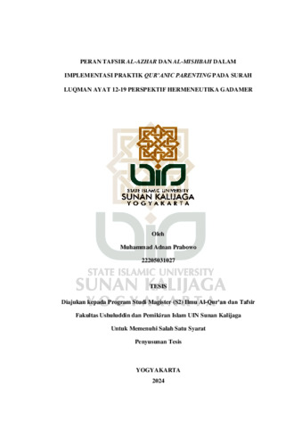Text (PERAN TAFSIR AL-AZHAR DAN AL-MISHBAH DALAM IMPLEMENTASI PRAKTIK QUR’ANIC PARENTING PADA SURAH LUQMAN AYAT 12-19 PERSPEKTIF HERMENEUTIKA GADAMER)
