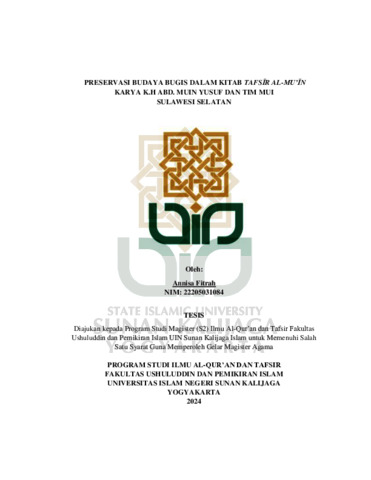 Annisa Fitrah, NIM.: 22205031084 (2024) PRESERVASI BUDAYA BUGIS DALAM KITAB TAFSIR AL-MU’IN KARYA K.H ABD. MUIN YUSUF DAN TIM MUI SULAWESI SELATAN. Masters thesis, UIN SUNAN KALIJAGA YOGYAKARTA.