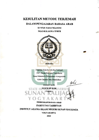 Moch. Muslih, NIM.: 97423611 (2003) KESULITAN METODE TERJEMAH DALAM PENGAJARAN BAHASA ARAB DI MTsN TANJUNGANOM NGANJUK JAWA TIMUR. Skripsi thesis, UIN SUNAN KALIJAGA YOGYAKARTA.