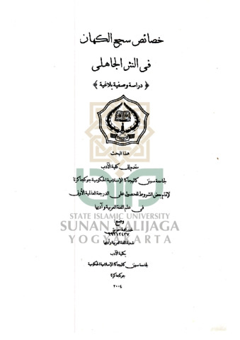 Khodijah Hurriyati, NIM. 99112437 (2004) KHASAIS SAJA' AL KIHAN FI AL AL NASH AL JAHILY (DIRASAH WASFIYYAH BALAGHIYYAH). Skripsi thesis, UIN SUNAN KALIJAGA YOGYAKARTA.