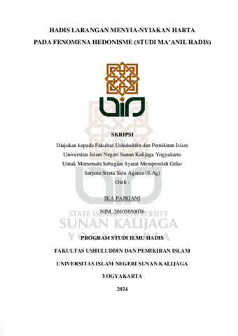 Text (HADIS LARANGAN MENYIA-NYIAKAN HARTA PADA FENOMENA HEDONISME (STUDI MA’ANIL HADIS))