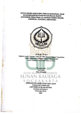 Titi Patiha, NIM.: 99424402 (2004) MOTIVASI BELAJAR SISWA TERHADAP BAHASA ARAB DI MADRASAH IBTIDAIYAH MACHALUL BAEDI DI PONDOK PESANTREN AL-ASYHAR NGENTAKSARI, KESONGO, TUNTANG, SEMARANG. Skripsi thesis, UIN SUNAN KALIJAGA YOGYAKARTA.