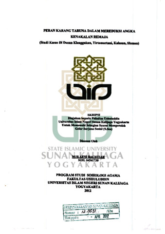 Text (PERAN KARANG TARUNA DALAM MEREDUKSI ANGKA KENAKALAN REMAJA (STUDI KASUS DI DUSUN KLENGGUKAN, TIRTOMARTANI, KALASAN, SLEMAN))