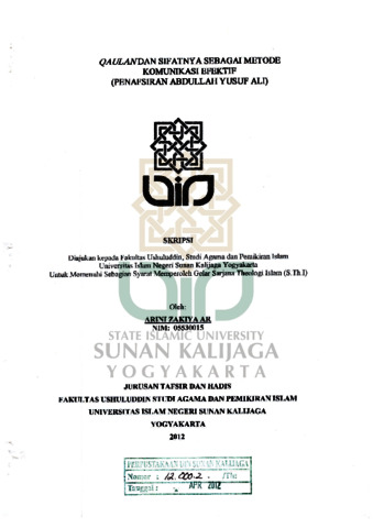 Arini Zakiya AR, NIM.: 05530015 (2012) QAULAN DAN SIFATNYA SEBAGAI METODE KOMUNIKASI EFEKTIF (PENAFSIRAN ABDULLAH YUSUF ALI). Skripsi thesis, UIN SUNAN KALIJAGA YOGYAKARTA.
