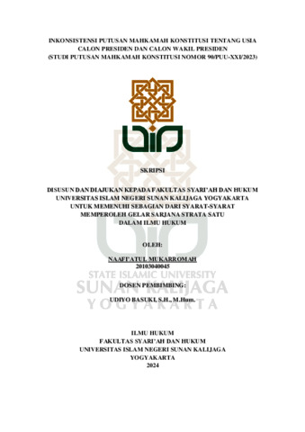 Naafi’atul Mukarromah, NIM.: 20103040045 (2024) INKONSISTENSI PUTUSAN MAHKAMAH KONSTITUSI TENTANG USIA CALON PRESIDEN DAN CALON WAKIL PRESIDEN (STUDI PUTUSAN MAHKAMAH KONSTITUSI NOMOR 90/PUU-XXI/2023). Skripsi thesis, UIN SUNAN KALIJAGA YOGYAKARTA.