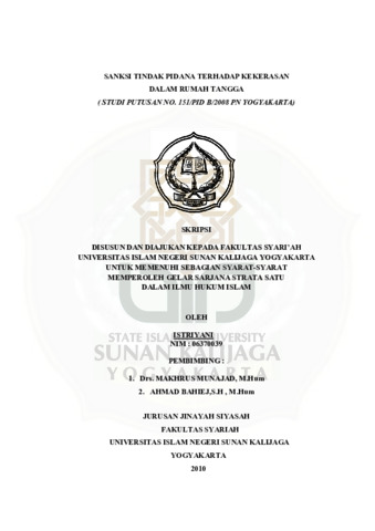 Text (SANKSI TINDAK PIDANA TERHADAP KEKERASAN DALAM RUMAH TANGGA ( STUDI PUTUSAN NO. 151/PID B/2008 PN YOGYAKARTA))