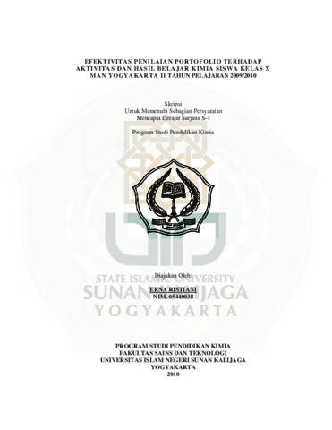 Erna Ristiani, NIM.: 05440038 (2010) EFEKTIVITAS PENILAIAN PORTOFOLIO TERHADAP AKTIVITAS DAN HASIL BELAJAR KIMIA SISWA KELAS X MAN YOGYAKARTA II TAHUN PELAJARAN 2009/2010. Skripsi thesis, UIN SUNAN KALIJAGA YOGYAKARTA.
