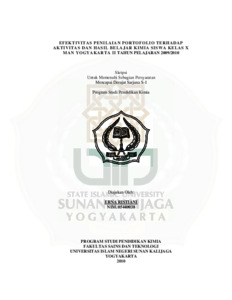 Text (EFEKTIVITAS PENILAIAN PORTOFOLIO TERHADAP AKTIVITAS DAN HASIL BELAJAR KIMIA SISWA KELAS X MAN YOGYAKARTA II TAHUN PELAJARAN 2009/2010)
