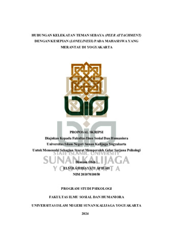 Text (HUBUNGAN KELEKATAN TEMAN SEBAYA (PEER ATTACHMENT) DENGAN KESEPIAN (LONELINESS) PADA MAHASISWA YANG MERANTAU DI YOGYAKARTA)