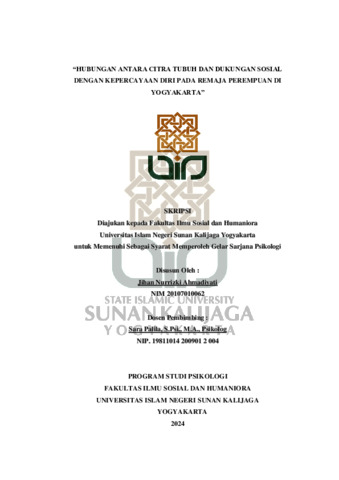 Text (HUBUNGAN ANTARA CITRA TUBUH DAN DUKUNGAN SOSIAL DENGAN KEPERCAYAAN DIRI PADA REMAJA PEREMPUAN DI YOGYAKARTA)
