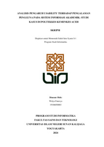 Widya Fanesya, NIM.: 19106050003 (2024) ANALISIS PENGARUH USABILITY TERHADAP PENGALAMAN PENGGUNA PADA SISTEM INFORMASI AKADEMIK: STUDI KASUS DI POLTEKKES KEMENKES ACEH. Skripsi thesis, UIN SUNAN KALIJAGA YOGYAKARTA.