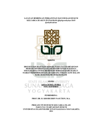 Anisa Nurul Fitria, NIM.: 20103050056 (2024) LAYANAN BIMBINGAN PERKAWINAN DAN EDUKASI HUKUM KELUARGA DI AKUN INSTAGRAM @fiqihpernikahan DAN @nikahinstitute. Skripsi thesis, UIN SUNAN KALIJAGA YOGYAKARTA.