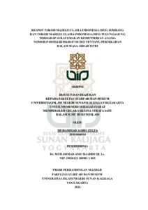 Muhammad Aghis Zulfa, NIM.: 20103060014 (2024) RESPON TOKOH MAJELIS ULAMA INDONESIA (MUI) JOMBANG DAN TOKOH MAJELIS ULAMA INDONESIA (MUI) TULUNGAGUNG TERHADAP SURAT EDARAN KEMENTERIAN AGAMA NOMOR:P-005/DJ.III/Hk.00.07/10/2021 TENTANG PERNIKAHAN DALAM MASA ‘IDDAH ISTRI. Skripsi thesis, UIN SUNAN KALIJAGA YOGYAKARTA.