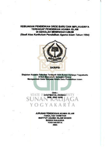 Chotmatul Zainiah, NIM.: 99414486 (2004) KEBIJAKAN PENDIDIKAN ORDE BARU DAN IMPLIKASINY A TERHADAP PENDIDIKAN AGAMA ISLAM DI SEKOLAH MENENGAH UMUM (Studi Atas Kurikulum Pendidikan Agama Islam Tahun 1994). Skripsi thesis, UIN SUNAN KALIJAGA YOGYAKARTA.