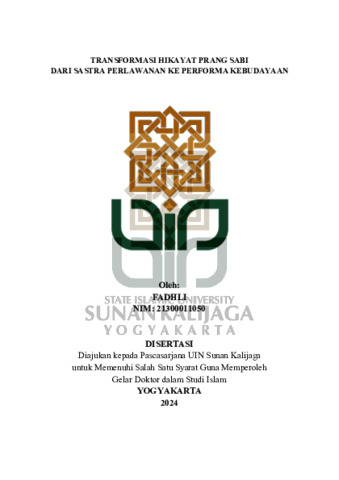 Fadhli, NIM.: 21300011050 (2024) TRANSFORMASI HIKAYAT PRANG SABI DARI SASTRA PERLAWANAN KE PERFORMA KEBUDAYAAN. Doctoral thesis, UIN SUNAN KALIJAGA YOGYAKARTA.
