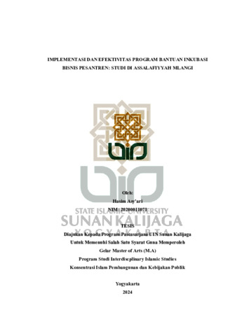 Text (IMPLEMENTASI DAN EFEKTIVITAS PROGRAM BANTUAN INKUBASI BISNIS PESANTREN: STUDI DI ASSALAFIYYAH MLANGI)
