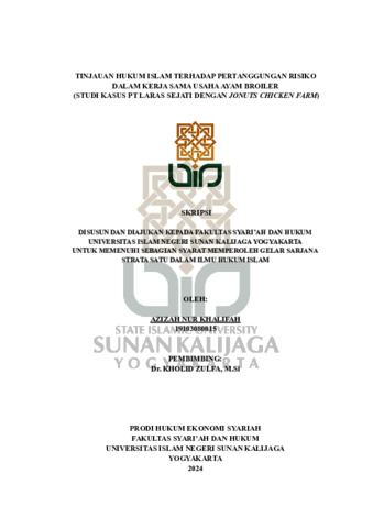 Text (TINJAUAN HUKUM ISLAM TERHADAP PERTANGGUNGAN RISIKO DALAM KERJA SAMA USAHA AYAM BROILER (STUDI KASUS PT LARAS SEJATI DENGAN JONUTS CHICKEN FARM))