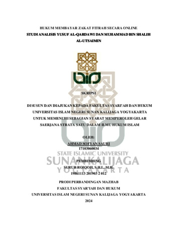Ahmad Sofyan Sauri, NIM.: 17103060034 (2024) HUKUM MEMBAYAR ZAKAT FITRAH SECARA ONLINE STUDI ANALISIS YUSUF AL-QARDAWI DAN MUHAMMAD BIN SHALIH AL-UTSAIMIN. Skripsi thesis, UIN SUNAN KALIJAGA YOGYAKARTA.