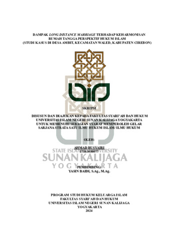 Ahmad Busyairi, NIM.: 17103050077 (2024) DAMPAK LONG DISTANCE MARRIAGE TERHADAP KEHARMONISAN RUMAH TANGGA PERSPEKTIF HUKUM ISLAM (STUDI KASUS DI DESA AMBIT, KECAMATAN WALED, KABUPATEN CIREBON). Skripsi thesis, UIN SUNAN KALIJAGA YOGYAKARTA.
