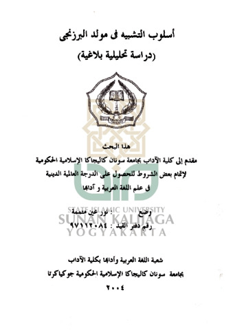 Nur 'Aini Mutammimah, NIM.: 97112084 (2004) Uslub Al Tashbiyyah Fi Mawlid Al Barzanjiy: dirasah tahliliyyah balaghiyyah. Skripsi thesis, UIN SUNAN KALIJAGA YOGYAKARTA.