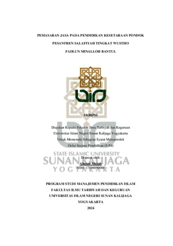 Text (PEMASARAN JASA PADA PENDIDIKAN KESETARAAN PONDOK PESANTREN SALAFIYAH TINGKAT WUSTHO FADLUN MINALLOH BANTUL)