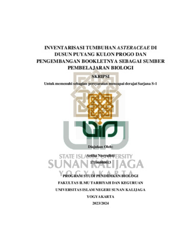 Artika Nuryulisti, NIM.: 17106080013 (2024) INVENTARISASI TUMBUHAN ASTERACEAE DI DUSUN PUYANG KULON PROGO DAN PENGEMBANGAN BOOKLETNYA SEBAGAI SUMBER PEMBELAJARAN BIOLOGI. Skripsi thesis, UIN SUNAN KALIJAGA YOGYAKARTA.