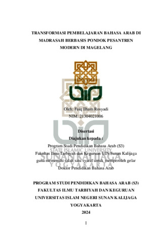 Faiq Ilham Rosyadi, NIM.: 21304021006 (2024) TRANSFORMASI PEMBELAJARAN BAHASA ARAB DI MADRASAH BERBASIS PONDOK PESANTREN MODERN DI MAGELANG. Doctoral thesis, UIN SUNAN KALIJAGA YOGYAKARTA.