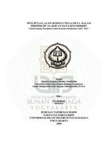 Yeti Dahliana, NIM.: 03531524 (2009) PENCIPTAAN ALAM SEMESTA MULA-MULA DALAM PERSPEKTIF AL-QUR’AN DAN SAINSMODERN (STUDI TENTANG PENCIPTAAN ALAM SEMESTA PENDEKATAN TAFSIR 'ILMI ). Skripsi thesis, UIN SUNAN KALIJAGA YOGYAKARTA.